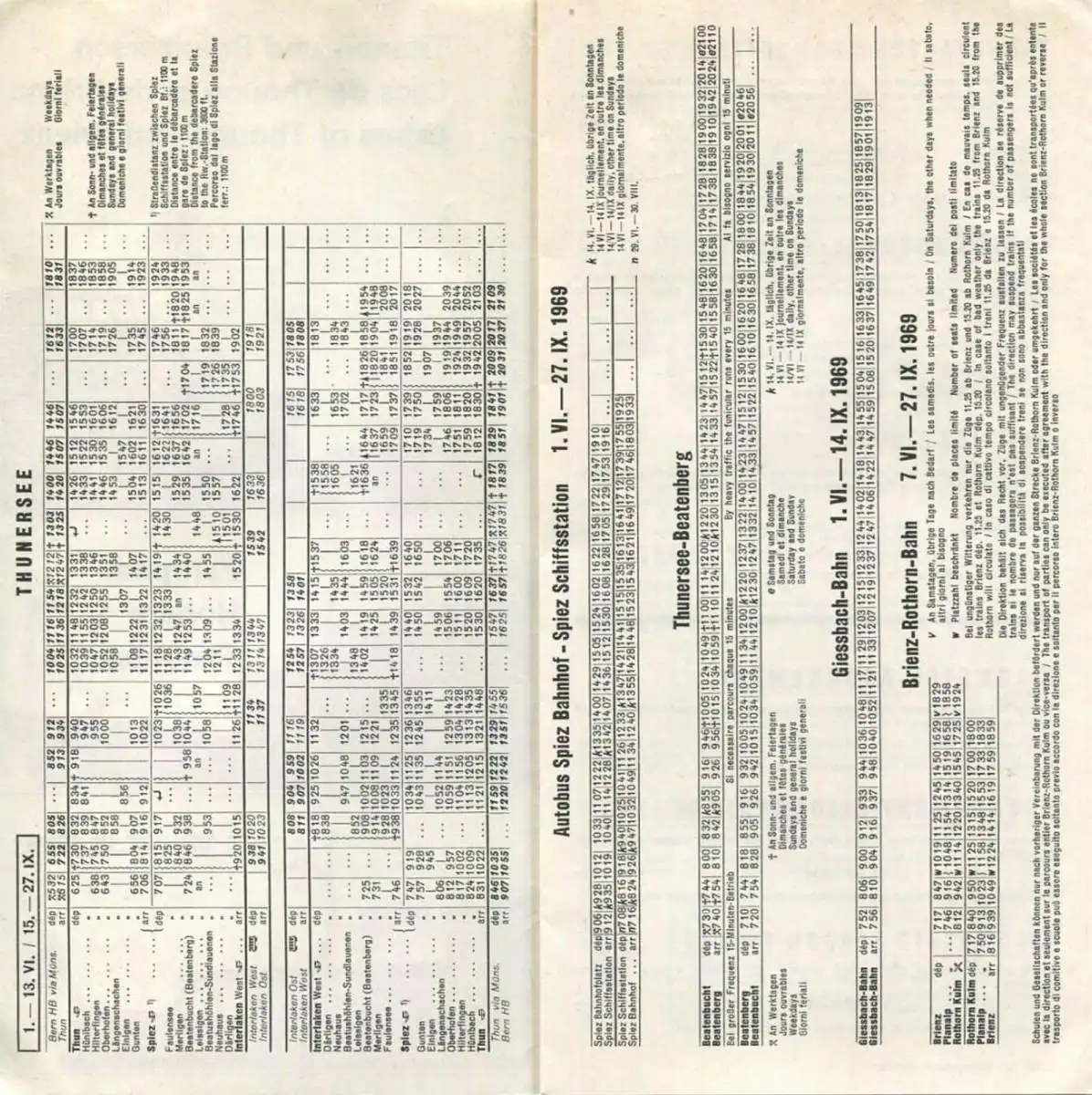 Schweiz - Fahrplan 1969 Thuner- und Brienzersee - Faltblatt
