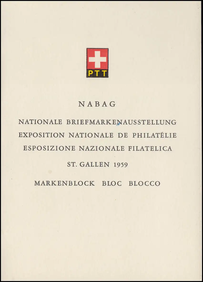 Schweiz Faltblatt Nr. 19 Block NABAG St. Gallen, Nr. 19, ET-O