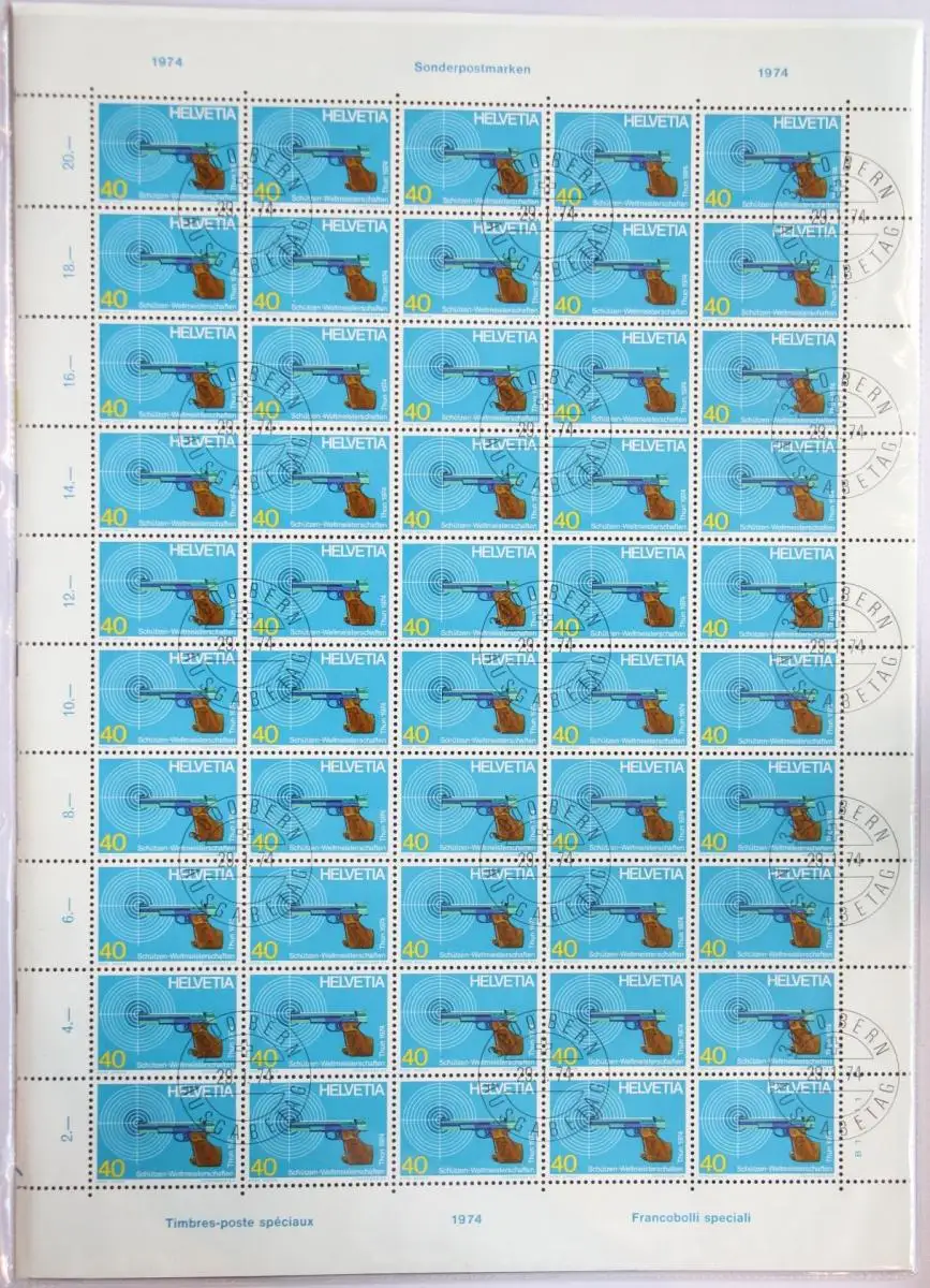 Schweiz Fünfzigerbogen 1019 gestempelt Waffen #GG062