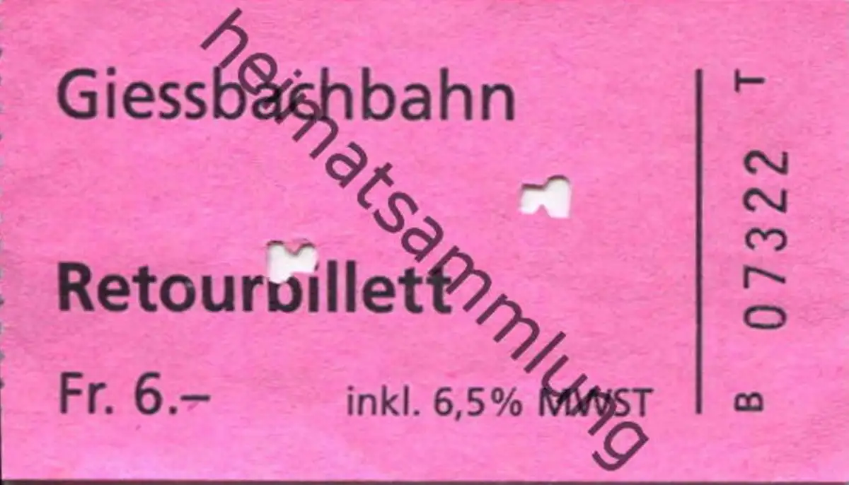 Schweiz - Giessbachbahn - Retourbillett Fr. 6.- Fahrschein