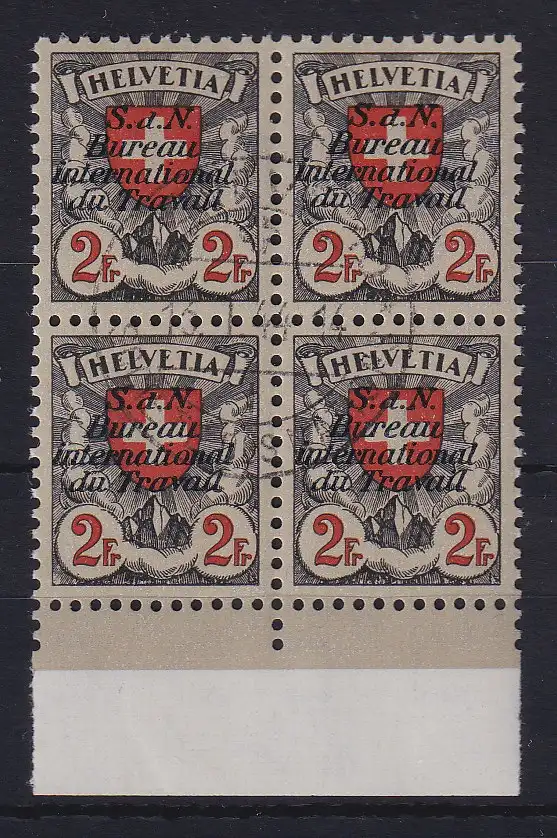 Schweiz Intern. Arbeitsorganisation 1937 Mi.-Nr. 24z Unterrandviererblock O
