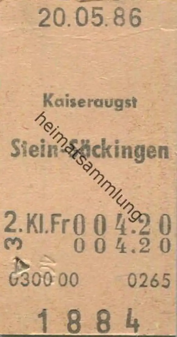 Schweiz - Kaiseraugst Stein-Säckingen - Fahrkarte 1986 (G59031)