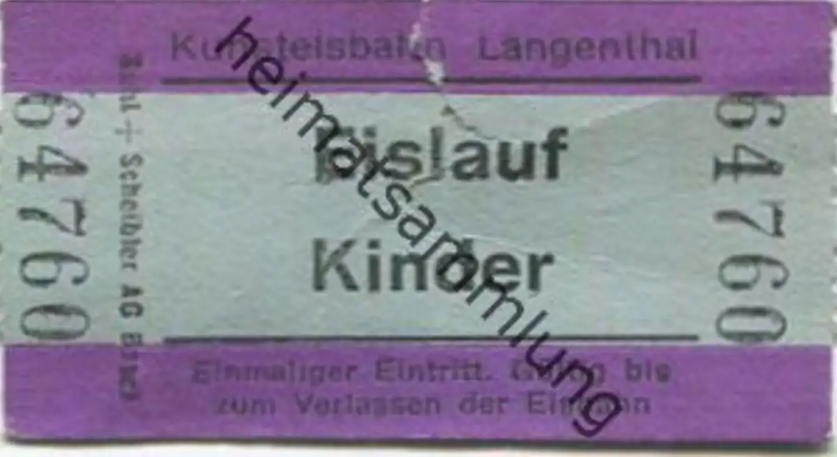 Schweiz - Kunsteisbahn Langenthal - Eislauf Kinder - Eintrittskarte