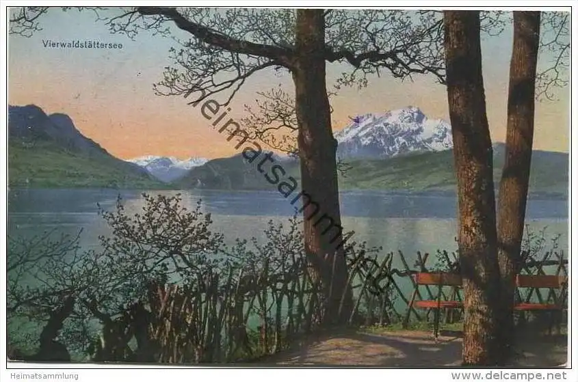 Schweiz - Luzern - Vierwaldstättersee und der Pilatus - Partie bei Hertenstein - Verlag E. Goetz Luzern - Gebrauchsspuren - Marke entfernt (G33247) gel. 1924