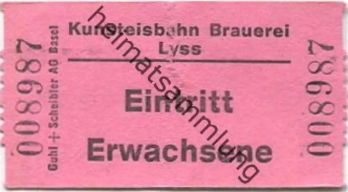Schweiz - Lyss - Kunsteisbahn Brauerei - Eintrittskarte Erwachsene