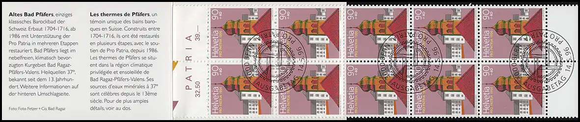 Schweiz Markenheftchen 0-105, Pro Patria Barockbad Pfäfers 1996, ESSt