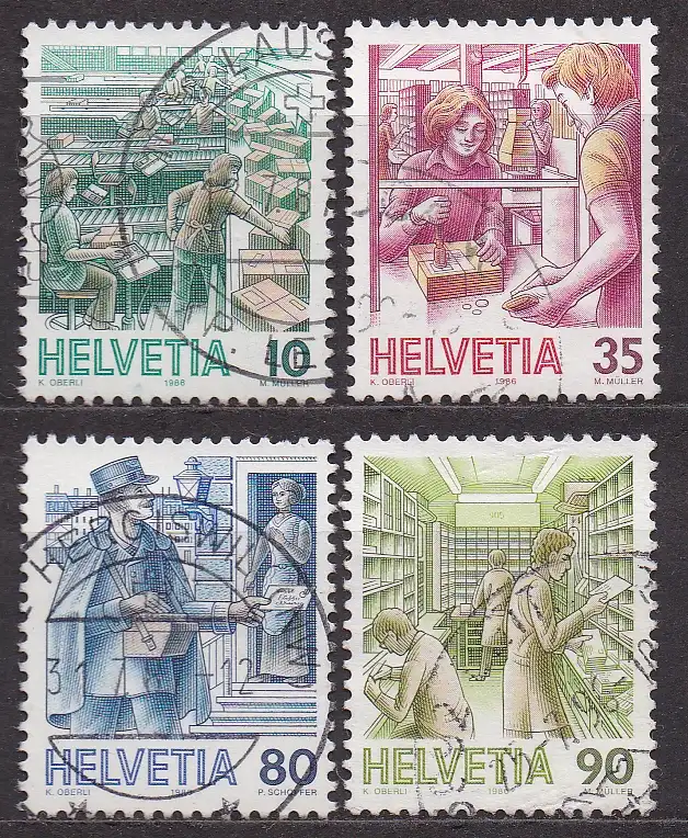 Schweiz, Mi-Nr. 1322, 1324, 1325 + 1326 gest., Postbeförderung