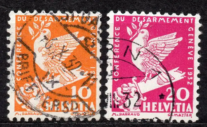 Schweiz, Mi-Nr. 251 + 252 gest., Friedenstaube