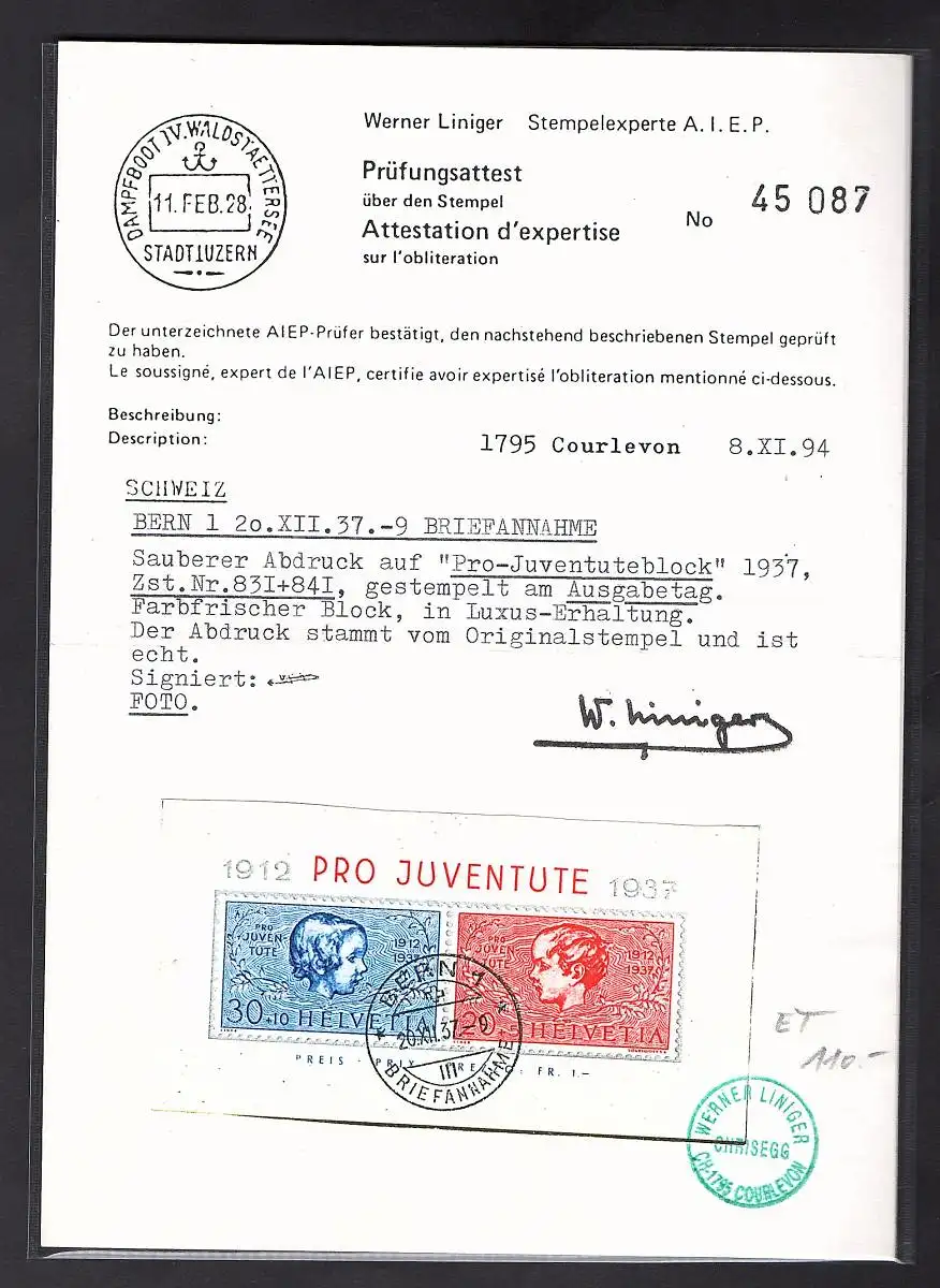 Schweiz Mi.-Nr. Block 3 gestempelt, FA. Liniger