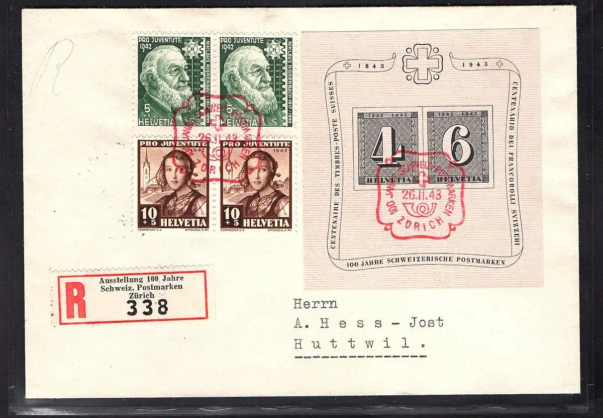 Schweiz Mi.-Nr. Block 8 u.a. auf R.-Brief gelaufen/FDC.