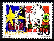 Schweiz Mi.Nr. 1481 Zirkuswelt, Harlekin, Lippizaner (90)