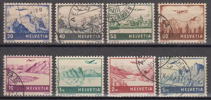 Schweiz Mi.Nr. 387-94 Flugzeug über Landschaften (8 Werte)