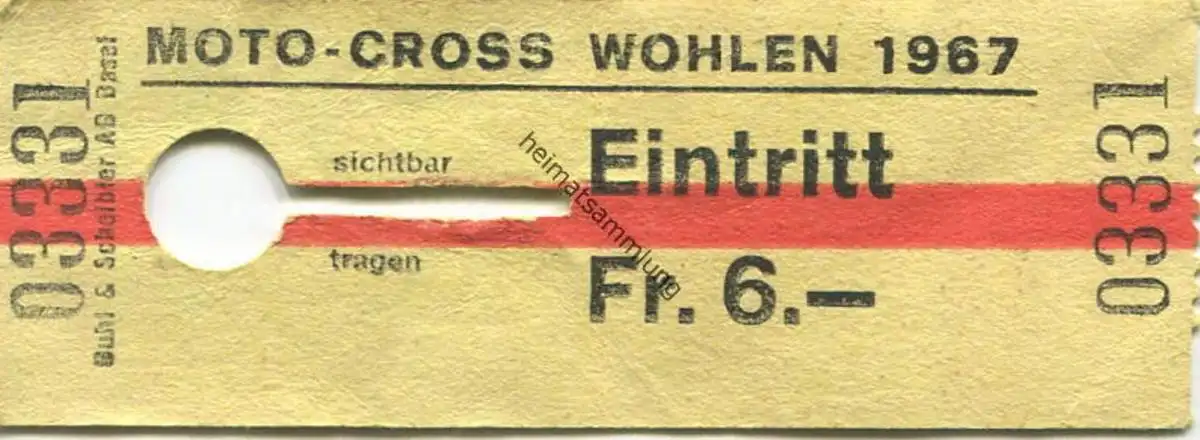 Schweiz - Moto-Cross Wohlen 1967 - Eintrittskarte