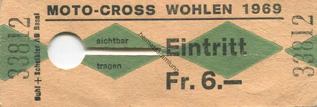 Schweiz - Moto-Cross Wohlen 1969 - Eintrittskarte