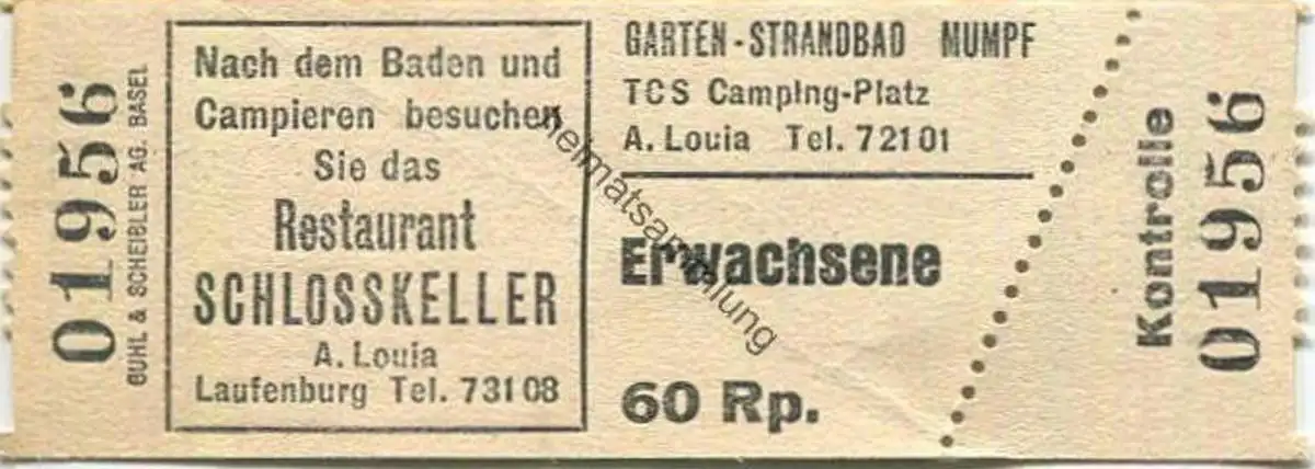 Schweiz - Mumpf - Garten Strandbad - Eintrittskarte