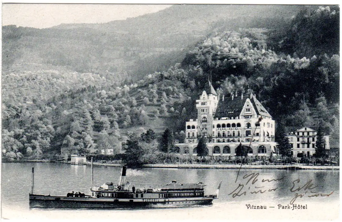 Schweiz, Park-Hotel Vitznazu m. Dampfschiff Victoria, ungebr. sw-AK