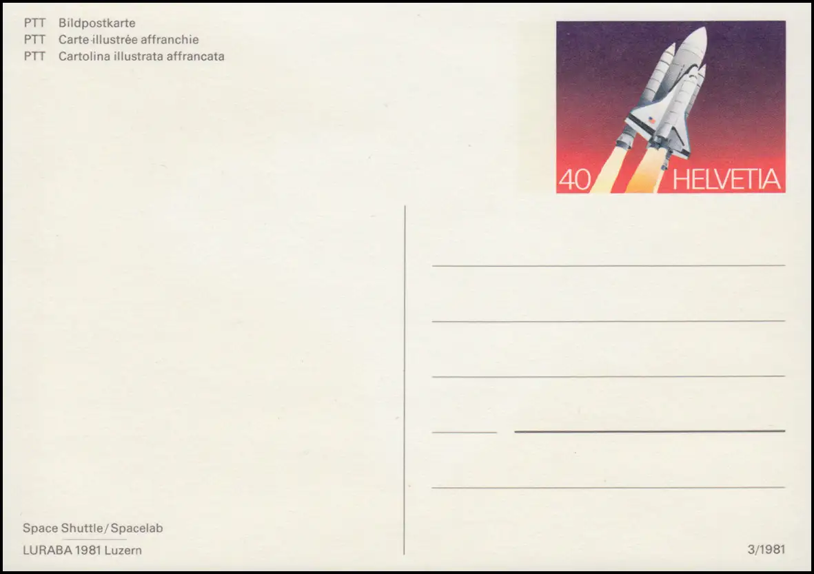 Schweiz Postkarte P 241 LURABA Luzern Weltraumflug 1981, ** postfrisch