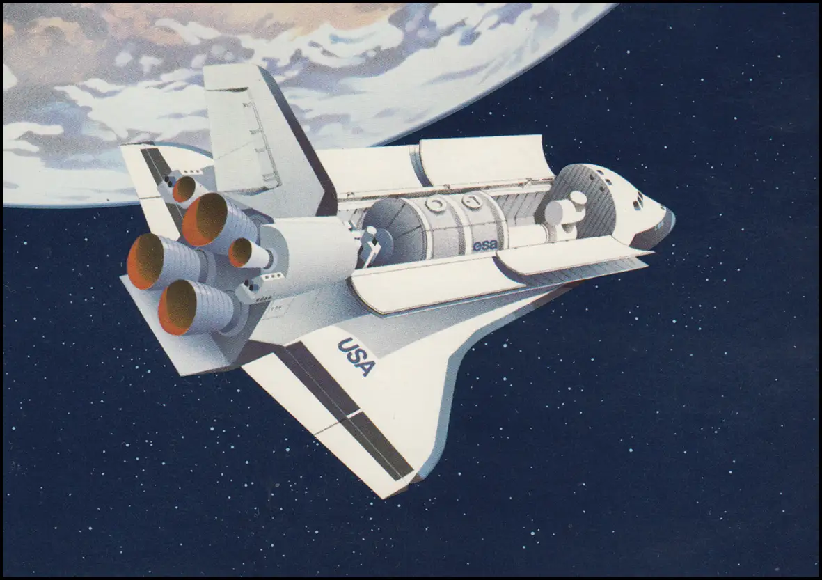 PTT Bildpostkarte mit Druckvermerk: 3/1981 / Ausstellung für Aero- und Astro-Philatelie / Space Shuttle / Spacelab