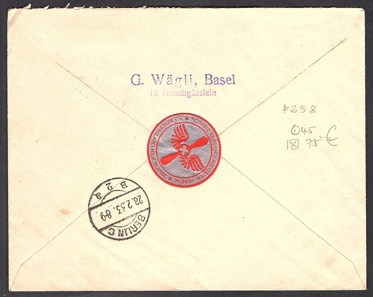 Schweiz, R-BLuftpost-Auslandbrief mit EF. Mi.-Nr. 258