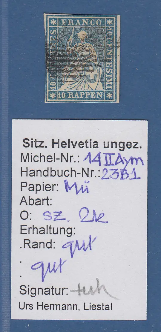 Schweiz Sitzende Helvetia 10 Rp. Berner Druck Mi.-Nr. 14II A ym gest. geprüft
