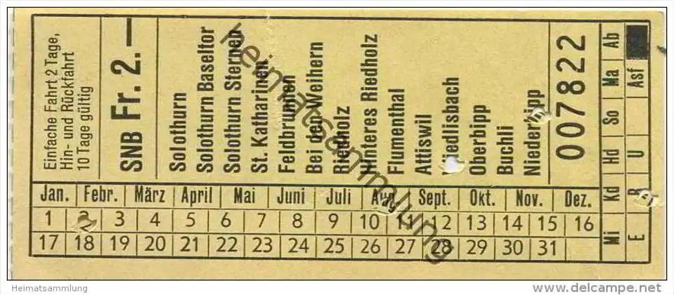 Schweiz - Solothurn-Niederbipp-Bahn - SNB - Fahrschein FR 2.-