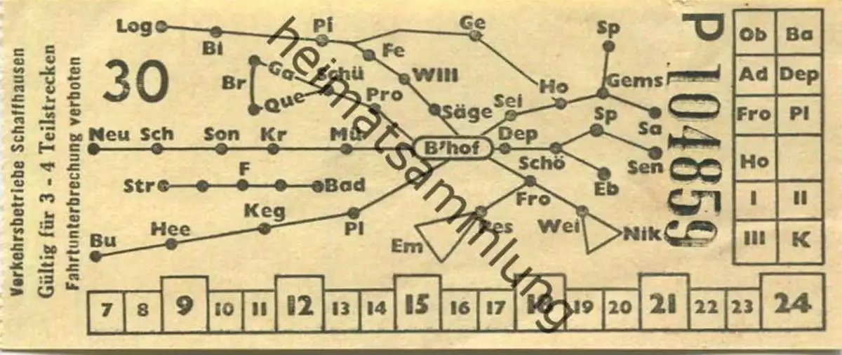 Schweiz - Verkehrsbetriebe Schaffhausen - Fahrschein (G49970)