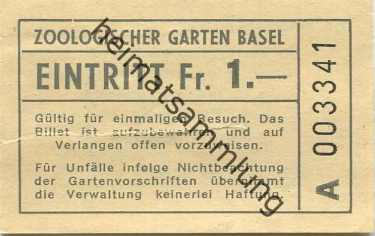 Schweiz - Zoologischer Garten Basel - Eintrittsbillet
