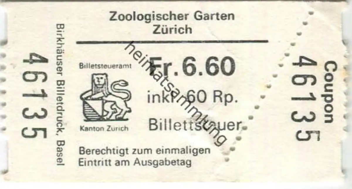 Schweiz - Zoologischer Garten Zürich - Eintrittskarte