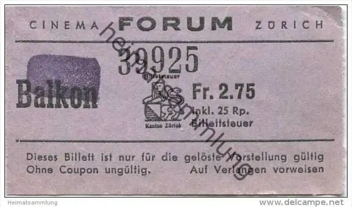 Schweiz - Zürich - Cinema Forum - Kinokarte