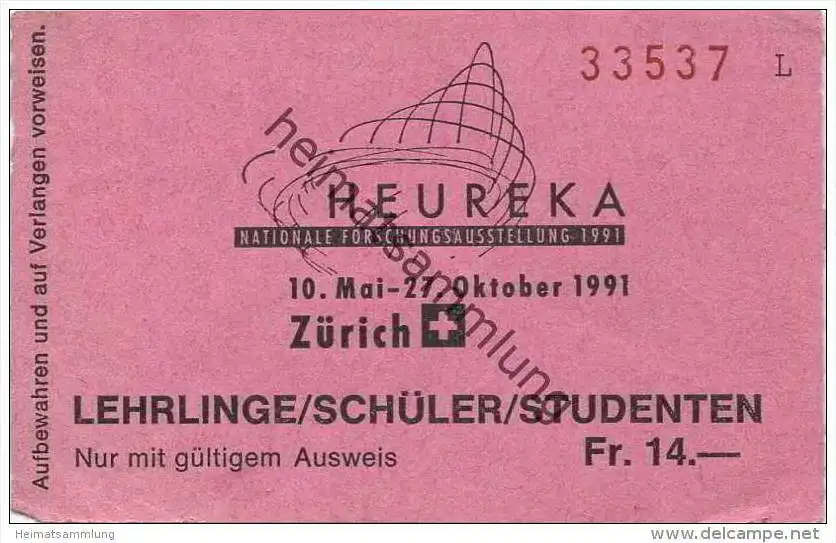 Schweiz - Zürich - Zürich - Heureka 1991 - Eintrittskarte