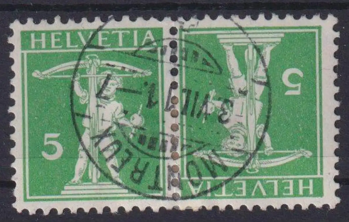 Schweiz Zusammendruck Tell K 5 I gestempelt Momtreux 3.7.1911 Kat.-Wert 80,00