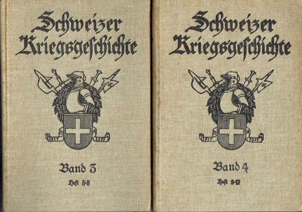 guter Zustand, Gebrauchs- und Alterungsspuren: Einbände teils etwas vergilbt und teils etwas stockfleckig - obere Deckelecke von Band 1 und die untere von Band 2 gestaucht - Papier teils etwas vergilbt, aber Seiten überwiegend sauber und ordentlich - Seitenschnitt teils etwas stockfleckig - Rückseiten oder letzte Textseite innen mit kleinem alten Besitzerstempel - die Seiten und die losen Kartenbeilagen in Band 3 teils etwas eselsohrig sowie die letzten Seiten an den Rändern teils mit kleinen Blessuren (auf Grund der dicken Kartentasche), die Geschichte der Schweizer Armee und ihrer Kriege von 1315 bis zum Beginn des Ersten Weltkrieges - Heft 1-4: 1315-1515: Von Morgarten bis Marignano - Heft 5-9: 1515-1815: Vom Ewigen Frieden mit Frankreich bis zum Sturze Napoleons - Heft 10-12: 1815-1915 Vom Wiener Kongreß bis zum Weltkrieg, Leinen, ca. 16 x 23, ca. 2217 Seiten mit zahlreichen Illustrationen und Kartenbeilagen