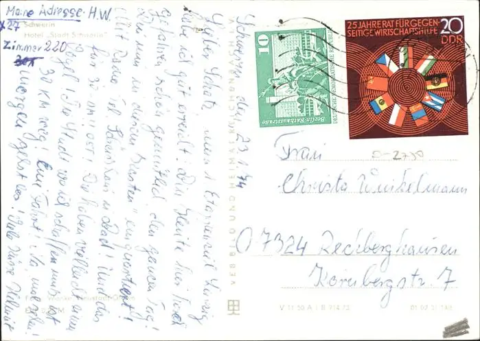 Schwerin Mecklenburg Hotel Stadt Schwerin Schwerin postalisch gelaufen 1974 Alte Ansichtskarte Postkarte Chriassa