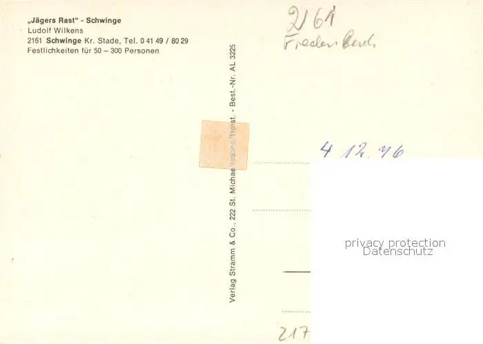Schwinge_Stade Jaegers Rast Gaststaette Landschaftspanorama Schwinge_Stade postalisch nicht gelaufen 1976 Erhaltung siehe scans [FriedD77] Frierer