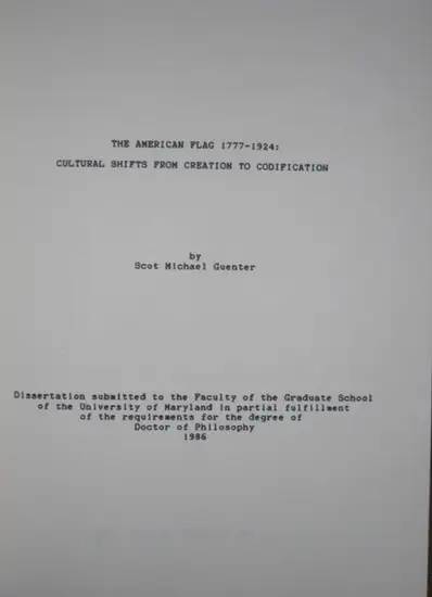 Scot, Michael Gunter - R. Gordon Kelly (Director): The American Flag 1777 - 1924 : Cultural Shifts from Creation to Codification. (Dissertation).