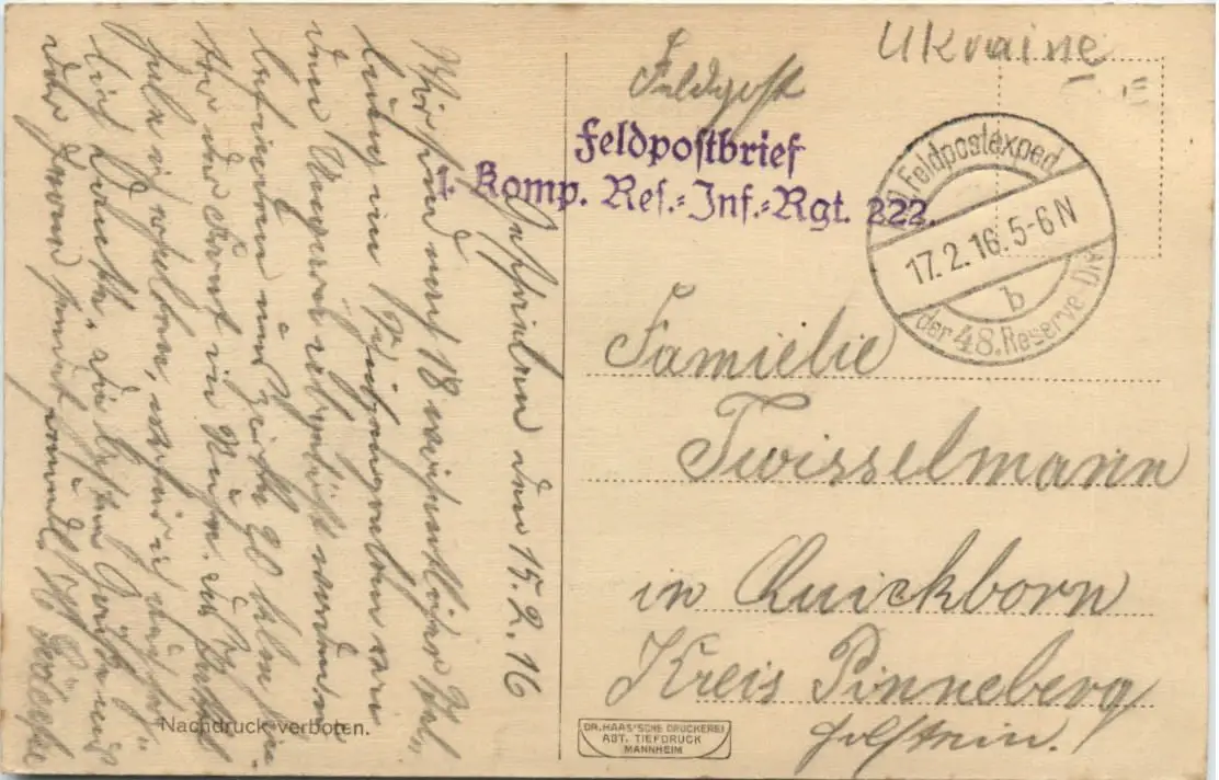 Scumlany - Feldpost Reserve Infanterie Regiment 222 -461524