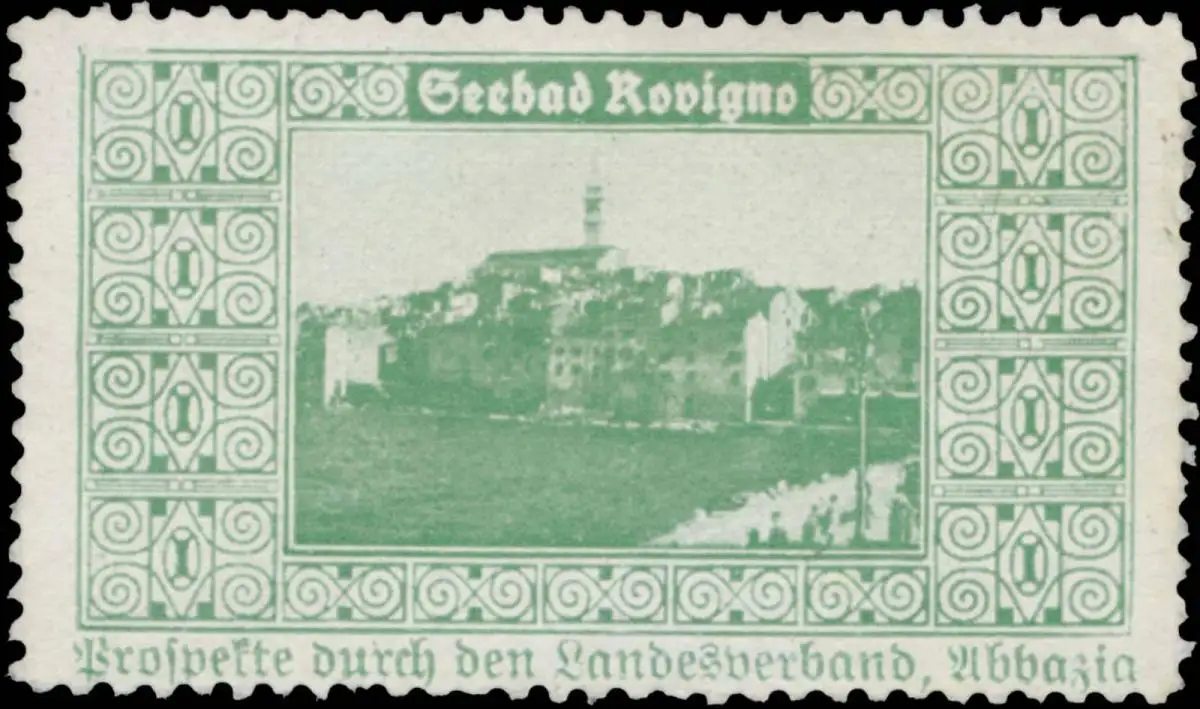 Prospekte durch den Landesverband, Abbazia (Kroatien), grün , Größe/Zustand: 3x5 , guter Zustand, Original alte Reklamemarke die seinerzeit für die Werbung benutzt wurde