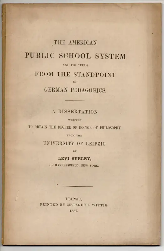 Seeley, Levi: The American public school system and its needs from the standpoint of German pedagogics. Dissertation.