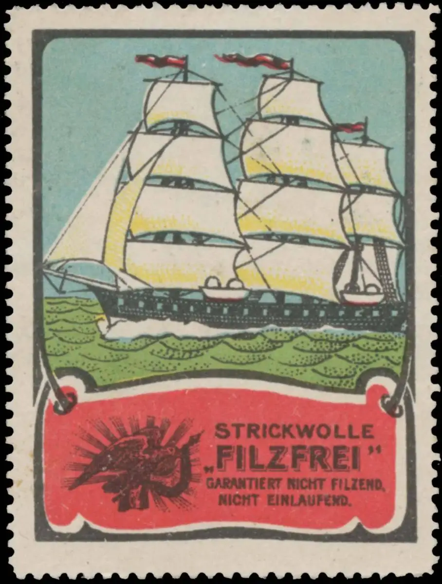 Schiff, Strickwolle filzfrei, garantiert nicht filzend, nicht einlaufend, Wolle, Handarbeit, Größe/Zustand: 6x4 , guter Zustand, Original alte Reklamemarke die seinerzeit für die Werbung benutzt wurde