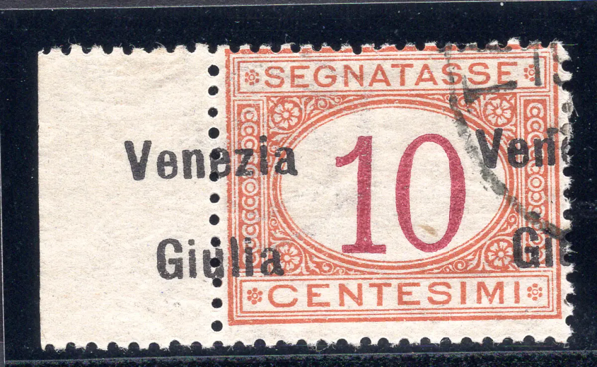 Segnatasse Cent. 10 Aufdrucke teilweise am Rand aufgedruckt Gebraucht - Venezia Giulia - Cent Steuermarken. 10 n. 2. stark nach links verschobener Aufdruck b. von f. mit aufgedrucktem Teil des Aufdrucks am Rand Code 876/11