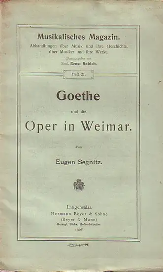 Segnitz, Eugen: Goethe und die Oper in Weimar.