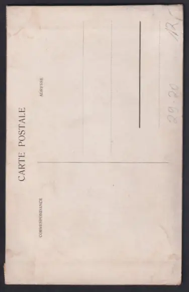 Personenbezogene Daten auf der Rückseite der Karte wurden durch blauen Textmarker unkenntlich gemacht. Die blauen Stellen sind auf die Vorderseite durchgeweicht und wirken sich negativ auf das Postkartenfoto aus