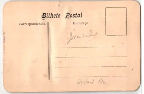 Personenbezogene Daten auf der Rückseite der Karte wurden durch blauen Textmarker unkenntlich gemacht. Die blauen Stellen sind auf die Vorderseite durchgeweicht und wirken sich negativ auf das Postkartenfoto aus