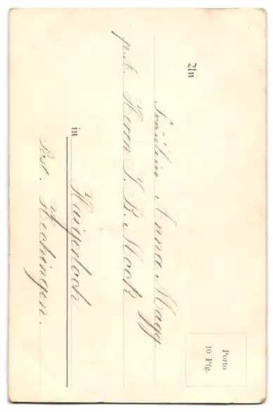 Personenbezogene Daten auf der Rückseite der Karte wurden durch blauen Textmarker unkenntlich gemacht. Die blauen Stellen sind auf die Vorderseite durchgeweicht und wirken sich negativ auf das Postkartenfoto aus