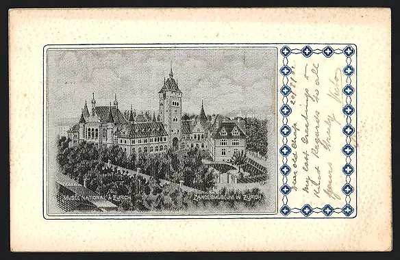 Seiden-AK Zürich, Blick auf das Landesmuseum
