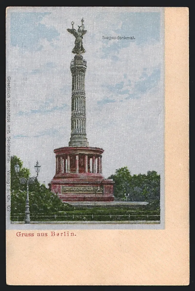 Seiden-Imitations-AK Berlin, Totalansicht der Siegessäule
