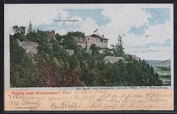 Seiden-Imitations-AK Greifenstein, Ruine Greifenstein