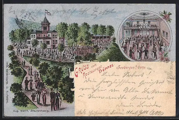 Seiden-Imitations-AK Seebergen, Restaurant Düppel