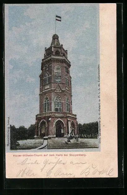 Seiden-Imitations-AK Stoppenberg, Kaiser-Wilhelm-Thurm auf dem Hallo