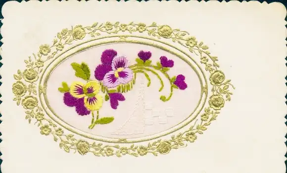 Seidenstick Ak Blumen, Rosen, Stiefmütterchen